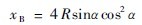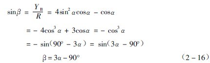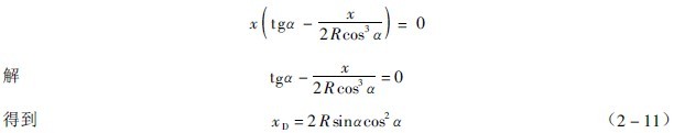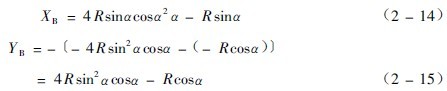 確定B點(diǎn)的坐標(biāo):B點(diǎn)是鋼球拋落的終點(diǎn),也是它開始圓運(yùn)動(dòng)之點(diǎn),所以它的坐標(biāo)xb和yb即公式(2-6)和(2-7)聯(lián)立時(shí)的公解。將公式(2-7)中的y代入公式(2-6)中,然后逐步化簡(jiǎn),得到