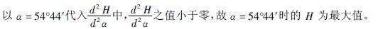 在拋落式工作的磨機中,磨礦作用主要來自鋼球落下時的動能。此動能的大小,與鋼球的落下高度(H)有關,而鋼球的落下高度又決定于磨機的轉速。根據前面的論述,必然可從鋼球更大落下高度來決定磨機的合適轉速。照此理,將公式(2-29)取導數(shù),并令它等于零,就可以求出使鋼球有拋物落下高度時的脫離角,再從它找到相應的轉速。