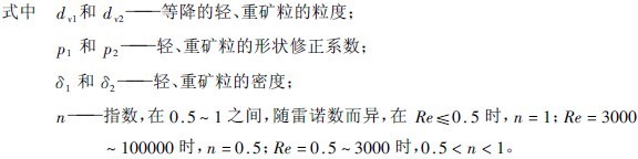 若屬多種性質(zhì)不同的礦粒一起在介質(zhì)中作干涉沉降,因目前還沒有計(jì)算這種情況下干涉沉降速度的公式,干涉沉降等降比不能求出。
