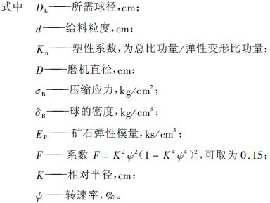 J.N.尼吉曼(Nijiman)的研究認(rèn)為,球徑Db與給礦粒度d之間應(yīng)有恰當(dāng)?shù)年P(guān)系,并提出以