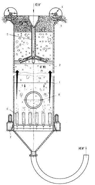 2)尾礦管堵塞。這是操作中容易發(fā)生的故障。原因多是由于礦漿中的礦石粒度太大,或者因給礦量突然增大和尾礦管閘門開的太小以及柱中落入其它雜物。排除方法:應(yīng)事先在排礦管下端的適當(dāng)位置安裝高壓水管或高壓風(fēng)管,一旦發(fā)生堵塞,可用高壓水或壓縮空氣來疏通。并檢查粒度與給礦量,至調(diào)到正常為止。
